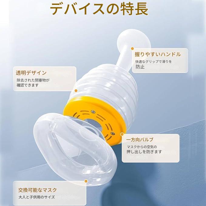 まさか必要になるとは思ってもいませんでした。夫がステーキを喉に詰まらせて顔が青ざめてしまったので、このマスクを使用しました。すると数秒で詰まりが解消されました。これがなかったらどうなっていたか想像もつきません。